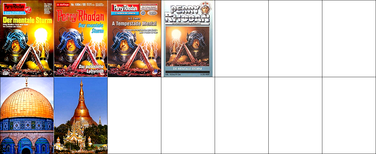 1 - 4 gleiches Bild, 4 seitenverkehrt, die Gebäude im Hintergrund könnten der Felsendom in Jerusalem und die Shwedagon Pagode in Rangon in Myanmar sein |