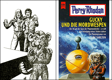 Gucky fasst sich nachdenklich mit der Hand an das Kinn und blickt auf die Seite |