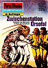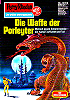 2 Terraner stehen mit krabbenähnlichem Außerirdischem (Porleyter) auf Schweber |