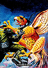 Menschen im Gespräch mit krebsähnlichem Außerirdischen |