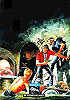 drei Männer auf der Flucht, einer davon steht bis zur Hüfte im Wasser |