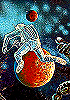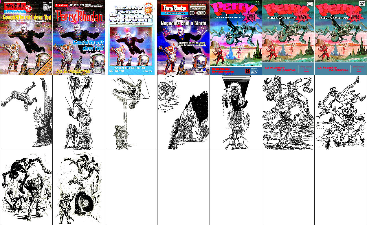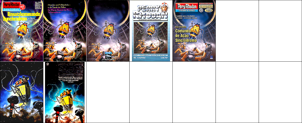 1 - 4 gleiches Bild, der Raumfahrer in der Mitte des Bildes ist von 8 nachgezeichnet |