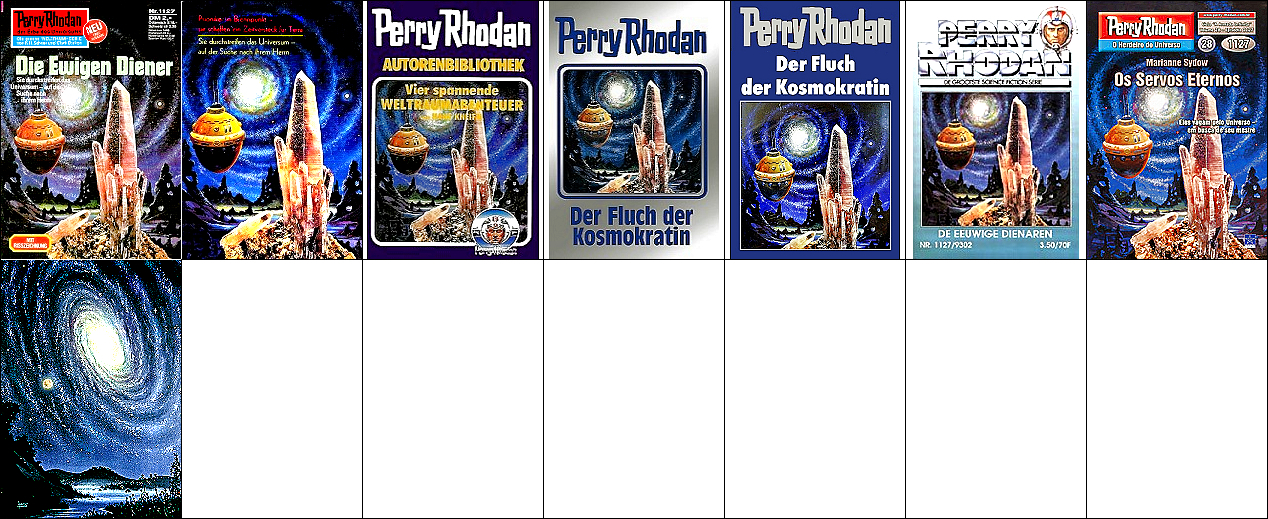 1 - 7 gleiches Bild, der Himmel mit der Spiralgalaxis könnte von 8 inspiriert sein |