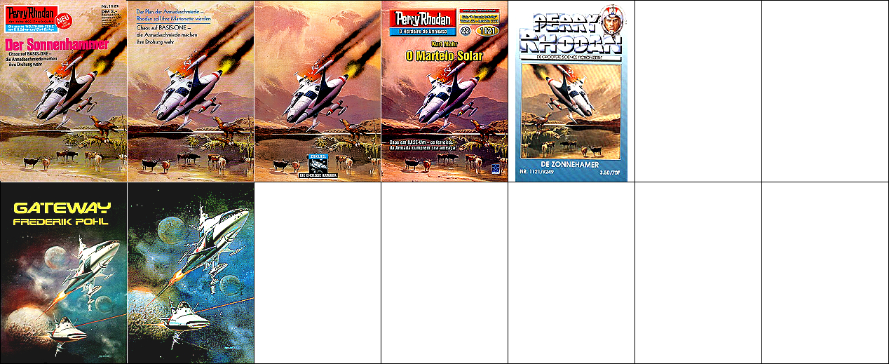 1 5 gleiches Bild, 5 gespiegelt, die Farbgebung des Raumbootes ist von 8 bzw. 9 inspiriert |