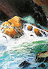 1 - 4 gleiches Bild, in 5 kommt auch der Hintergrund mit dem Felsen vor, über den Wasserrinnsale fließen, dieser Hintergrund ist von 8 übernommen, in 1 gespiegelt |