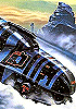 Festungsring, dahinter aufsteigende Raumjäger vor Wolken |