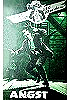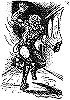 laufender Mann mit einer erhobenen Hand, in der anderen eine Pistole, von vorne gesehen |