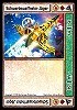 schwarzgelb gestreiftes Raumboot mit Planeten |