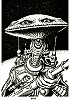 hantelförmiges Gebilde aus 2 Halbkugeln mit turmartigen Aufbauten am oberen Ende |