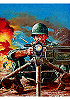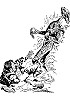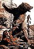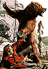 Terraner verteidigt sich gegen löwenköpfiges Wesen, siehe auch