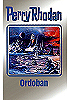 Konterfei von PR-Autor William Voltz über Mond, daneben Diskusraumschiff |
