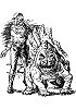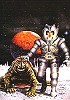 Terraner mit Echse auf der Schulter spricht mit Bärenwesen |