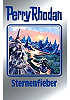 Terraner im Gleiter, daneben zweiter im Schweber über Landschaft mit Felszacken |