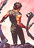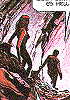 2 Menschen steigen Abhang hinab, vom Felsen greifen Arme nach ihnen |