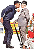 Mann deutet mit dem Finger auf echsenartigen Außerirdischen bzw. anderen Mann |