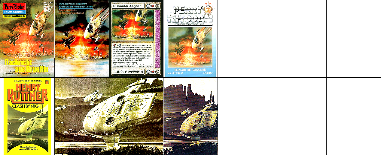 1 - 4 gleiches Bild, das Raumboot ist von 8 bzw. 9 inspiriert (man vergleiche den Bug mit der leuchtenden Spitze) |