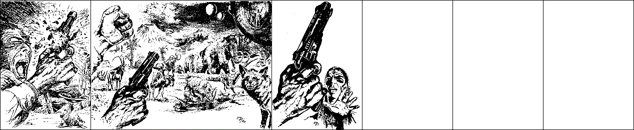 1 - 4 gleiches Bild, 2 seitenverkehrt, der schlanke Außerirdische taucht auch in den weiteren Bildern auf, in 6 ist ein Roboter daraus geworden, in 12 hat er eine andere Körperhaltung, ist aber auch wie die anderen Bilder von 15 nachgezeichnet |