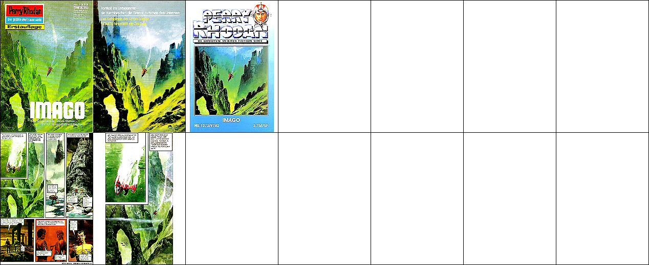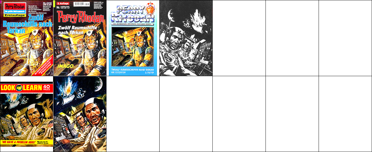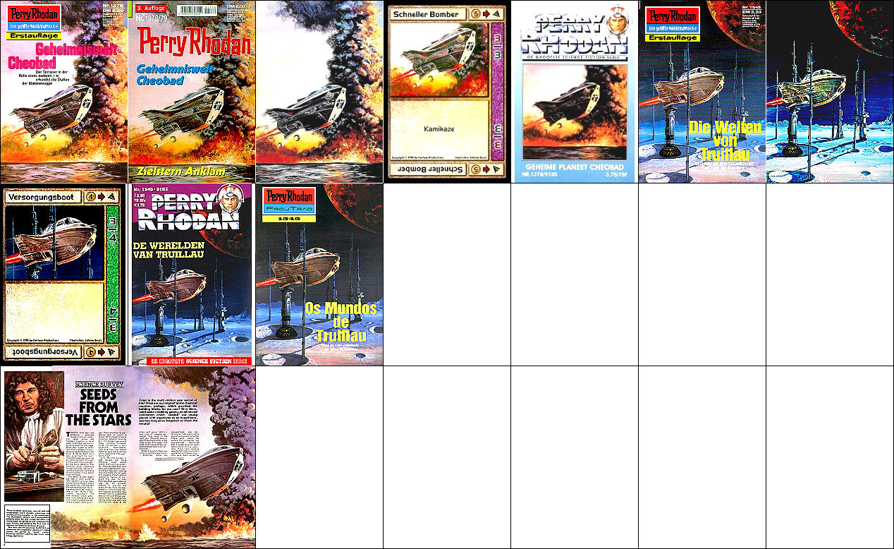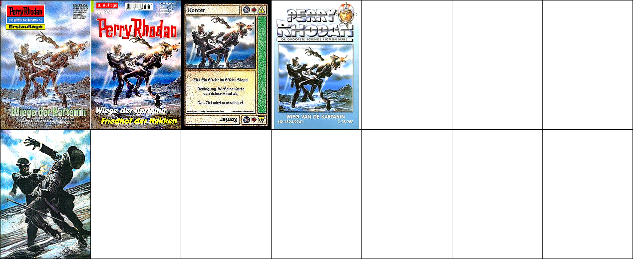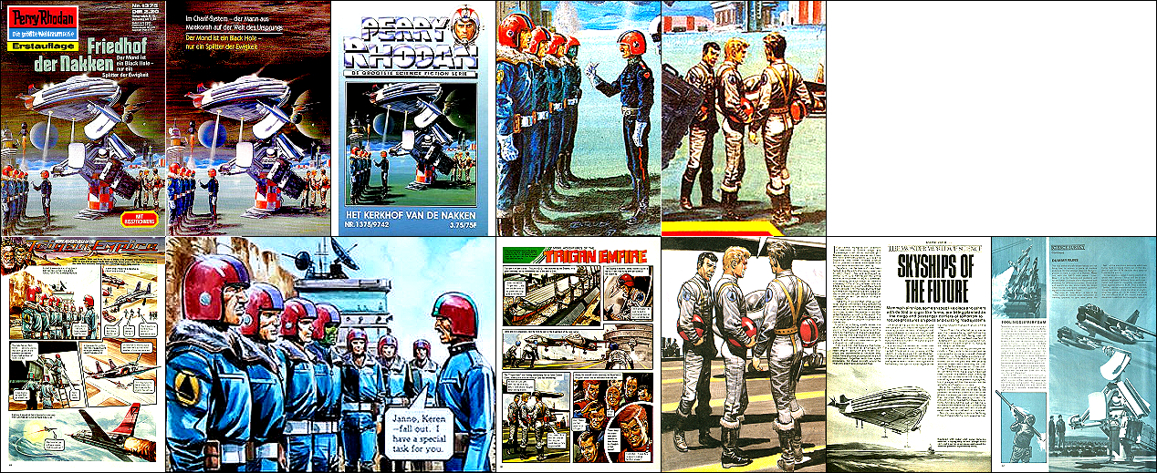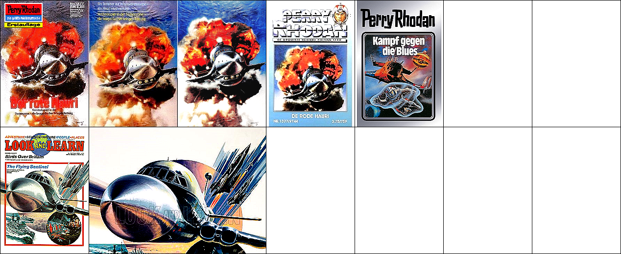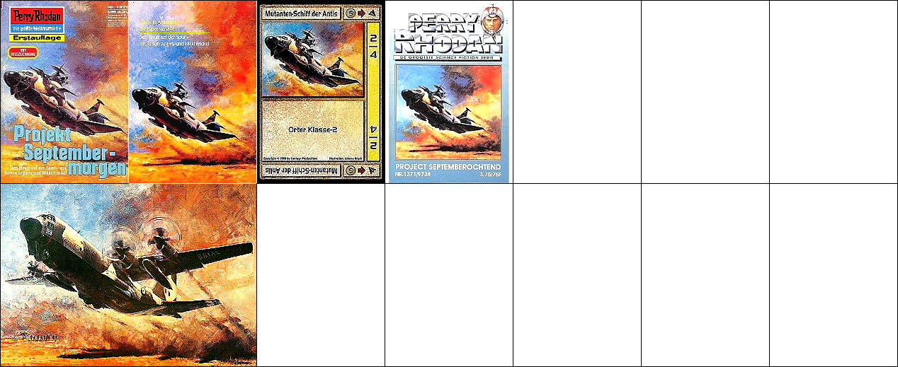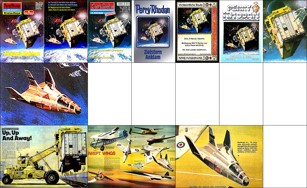 1 - 4 gleiches Bild, 5 ähnliches Motiv, das Raumschiff in 1 ist von 8 bzw. 9 inspiriert (man beachte die Bug-formation) |