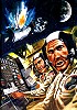 löwenköpfige Außerirdische vor Konsole, im Hintergrund explodierende Apollokapsel |