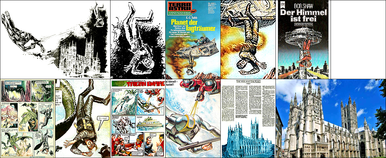 der fallende Mann kommt auch in 3 und 5 vor und ist von 8 nachgezeichnet, der schießende Mann ist von 10 nachgezeichnet, die Kathedrale ist von 12 nachgezeichnet |