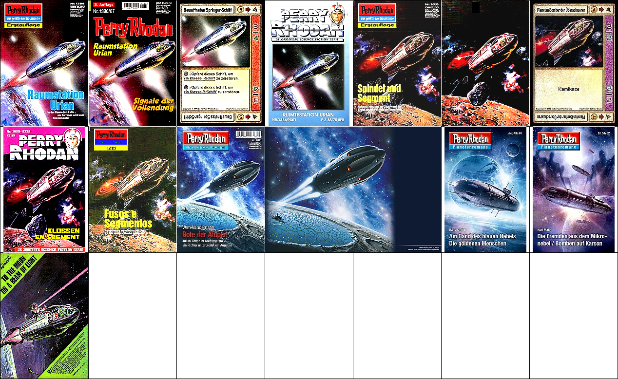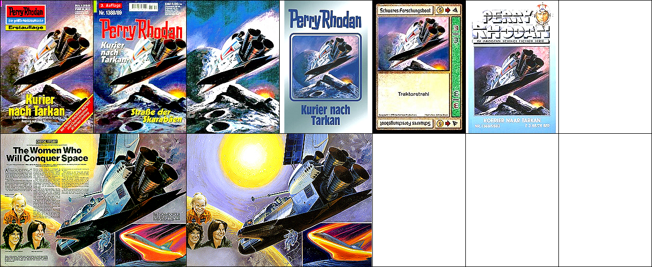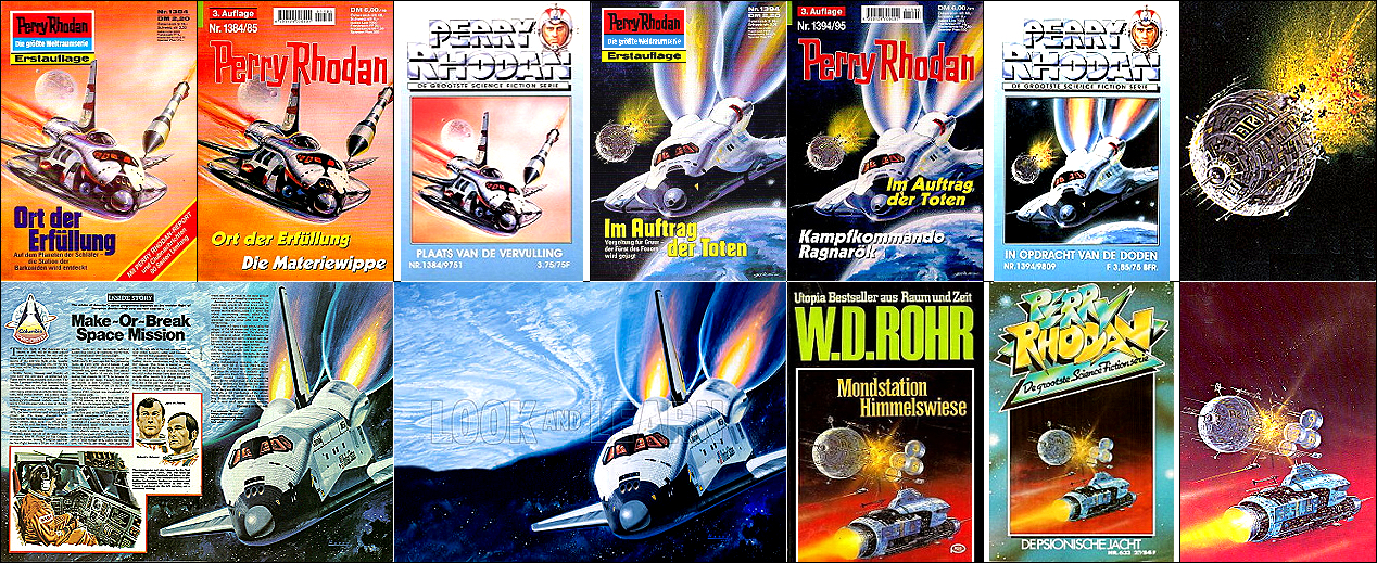 1 - 6 gleiches Bild, das Raumfahrzeug ist vom Space Shuttle in 8 bzw. 9 nachgezeichnet |