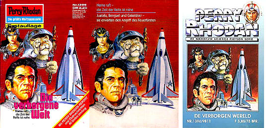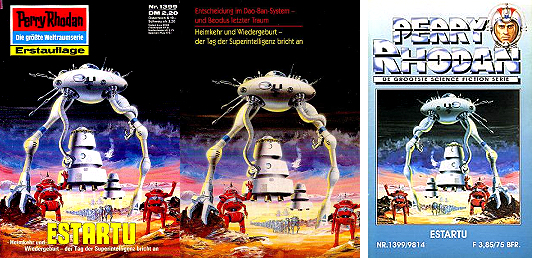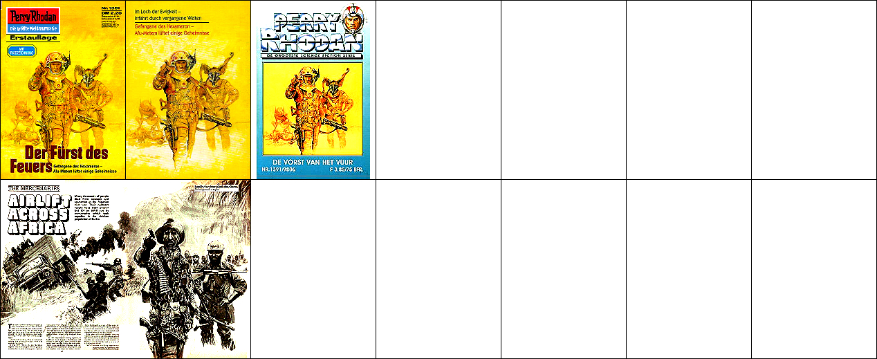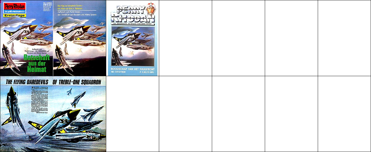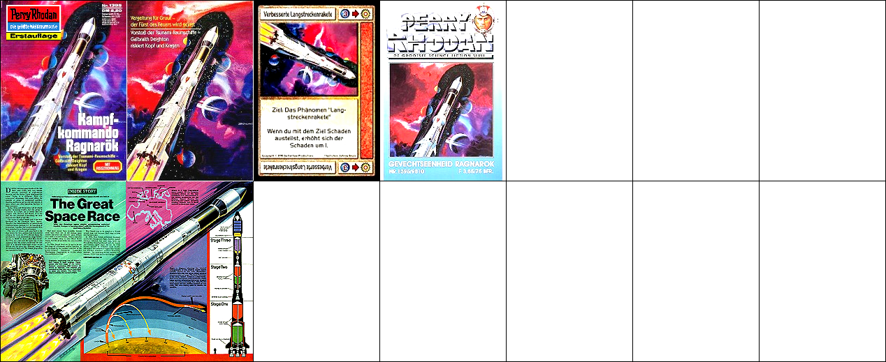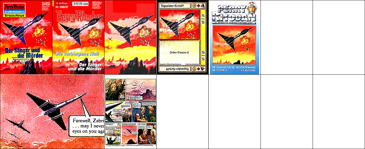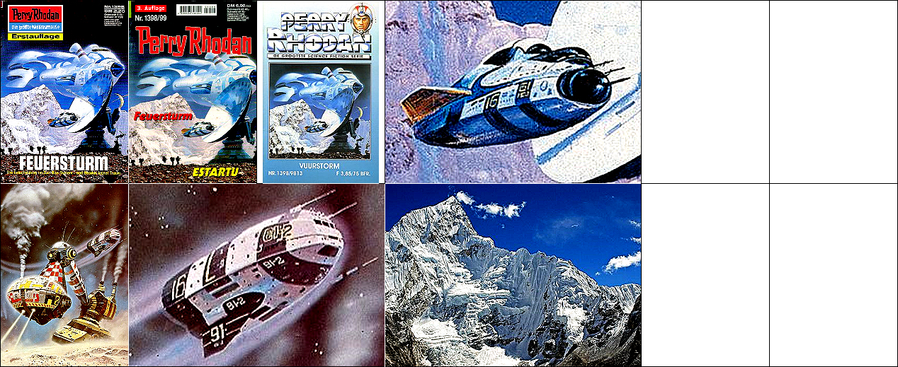 1 - 5 gleiches Bild, 4 Ausschnitt, das Raumschiff und die Hintergrundszenerie sind von 8 nachgezeichnet |