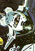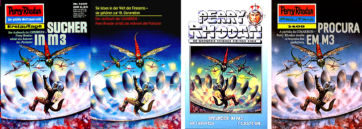 1 - 4 gleiches Bild, 2 seitenverkehrt, die Szene ist wahrscheinlich von 8 bzw. 9 inspiriert, die fliegenden Raumfahrer sind von 10 nachgezeichnet |