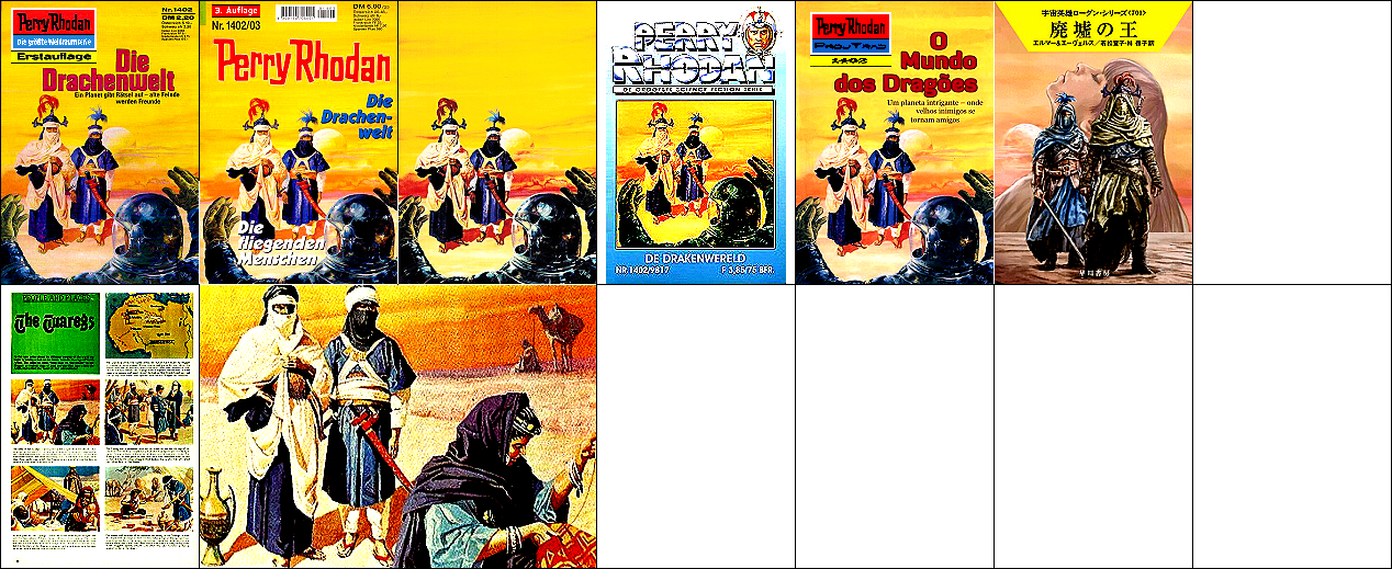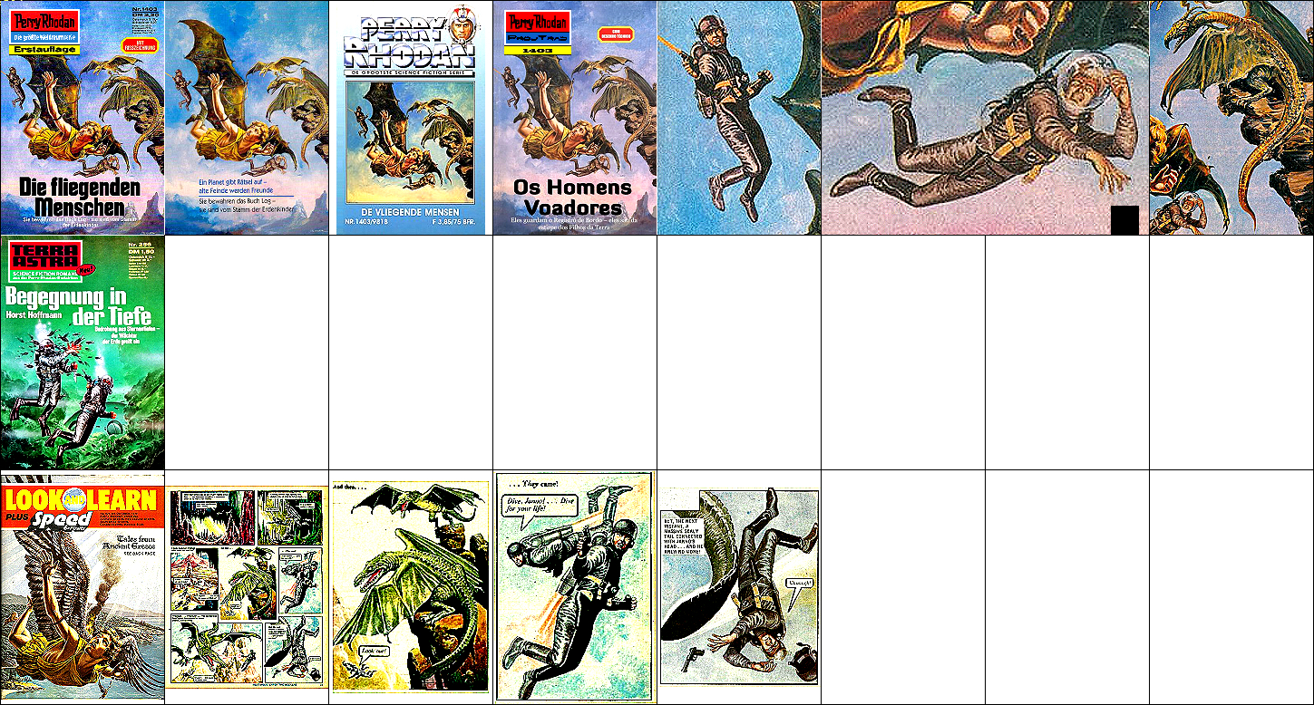 1 4 gleiches Bild, der Ikarus ist von 15 übernommen, die beiden Raumfahrer von 16, wobei der linke auch in 8 auftaucht, die beiden Drachen sind ebenfalls von 16 übernommen oder nachgezeichnet |