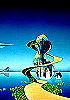pilzartiges Gebilde mit spiralförmig herumlaufender Rampe |