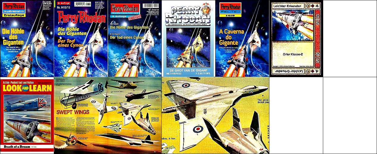 1 - 6 gleiches Bild, 6 um 90 Grad gedreht, die untere Rakete ist von 8 entnommen und leicht verändert, die obere von 9 |