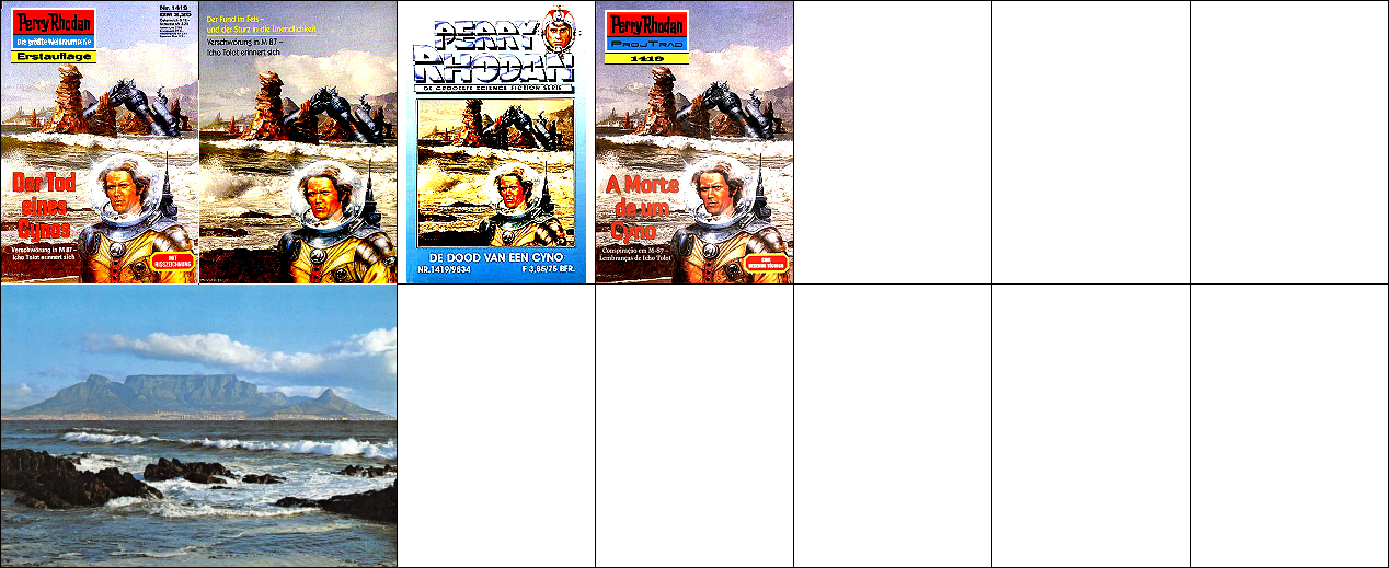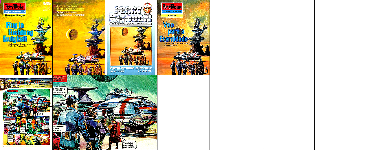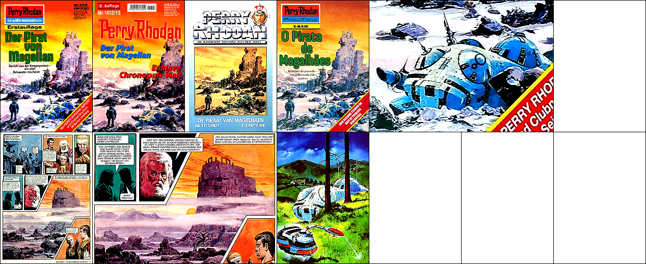 1 - 4 gleiches Bild, die Bildszenerie ist von 8 nachgezeichnet, das gelandete Raumboot von 10 inspiriert |