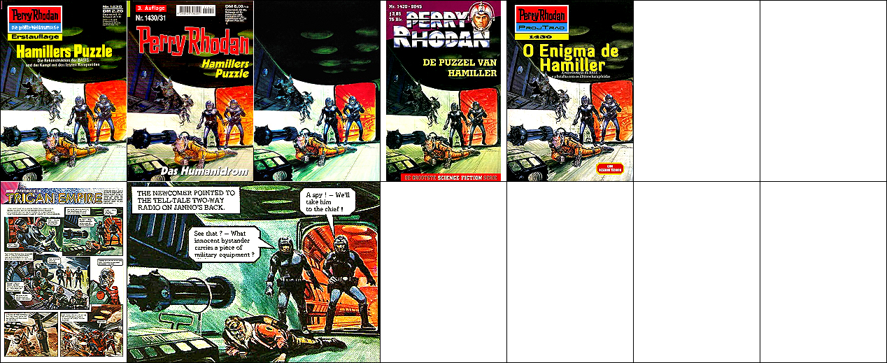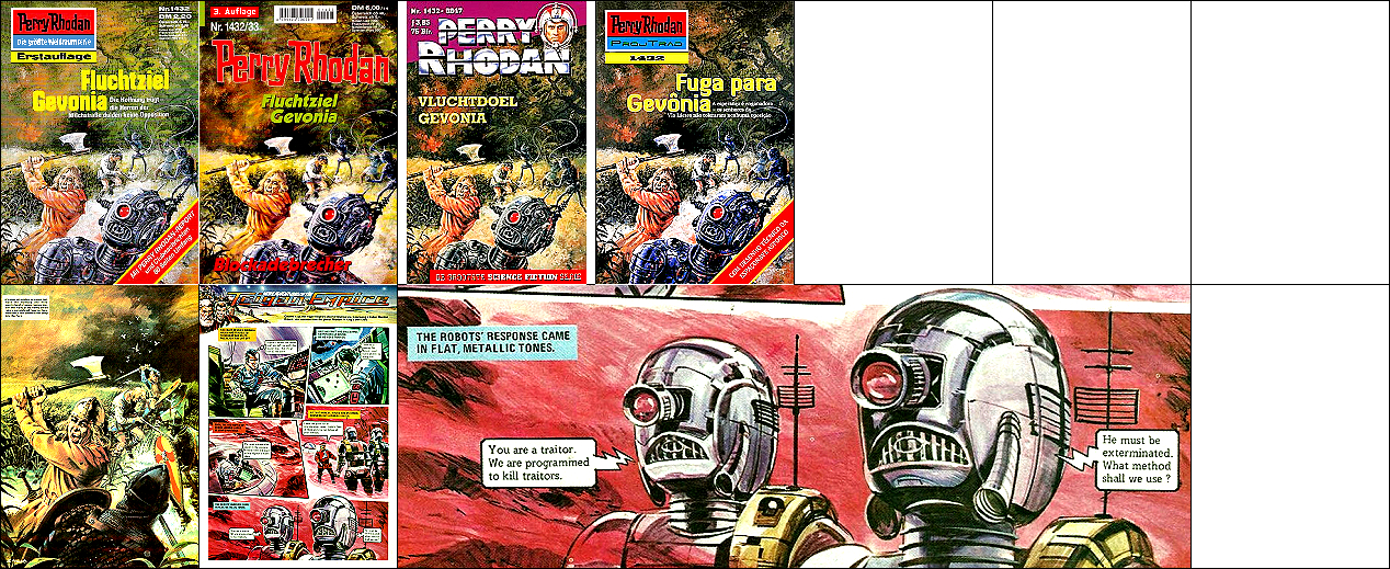 1 - 6 gleiches Bild, Vorbild für den Mann ist zweifellos der amerikanische Schauspieler Rod Taylor, der auch für den Roboter mit Menschenhaut in 7 wahrscheinlich als Vorlag diente |