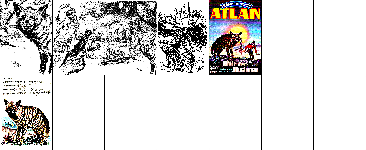 die Streifenhyäne am rechten Bildrand kommt auch in den weiteren Bildern vor und ist von 8 nachgezeichnet |