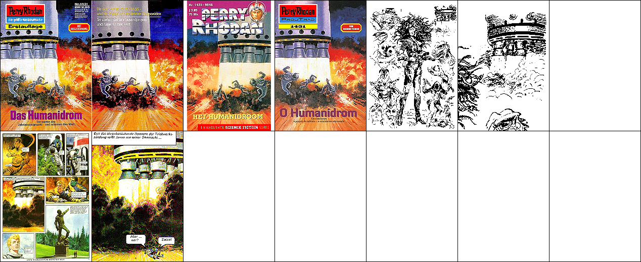 1 - 4 gleiches Bild, der Mann mit der Axt ist von 8 nachgezeichnet, der einäugige Roboter von 9 |