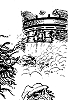 1 - 6 gleiches Bild, 4 Ausschnitt, bei der Burgruine handelt es sich um Slains Castle in Schottland, die auch in 7 gezeigt wird |