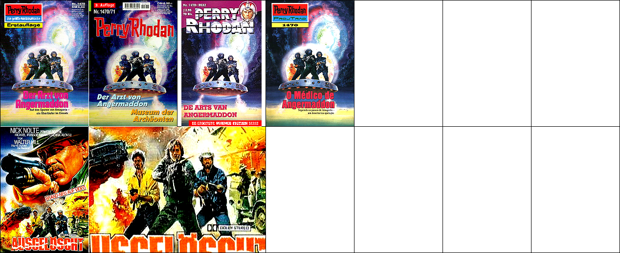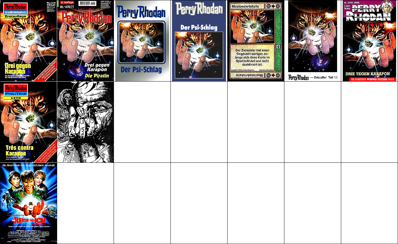 1 - 8 gleiches Bild, 6 und 7 seitenverkehrt, 9 ähnliches Handmotiv, die Hand in 1 ist vom Filmplakat in 15 gespiegelt übernommen |