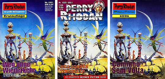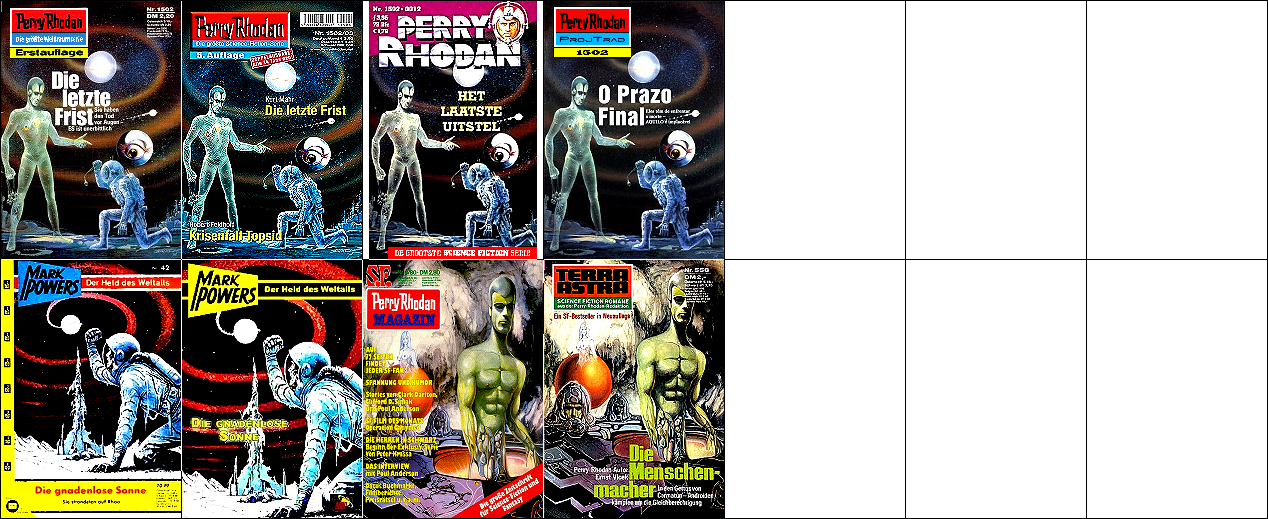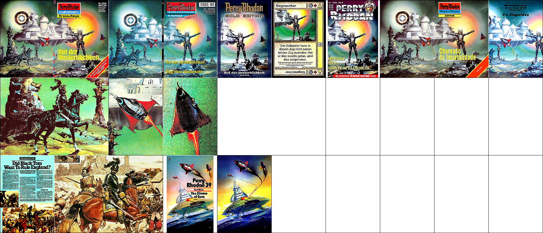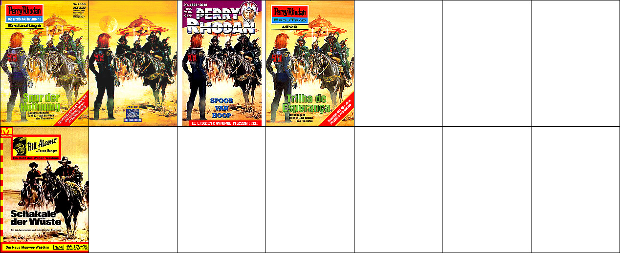 1 - 7 gleiches Bild, teilweise Ausschnitte, der Ritter ist von 15 nachgezeichnet, die beiden aufwärts fliegenden Raumboote dürften von 17 bzw. 18 nachgezeichnet sein |