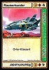 Raumboot über Wüstenlandschaft, am Himmel roter Planet |
