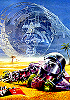 Schlange kriecht aus zerborstenem Helm eines toten Raumfahrers heraus, siehe auch