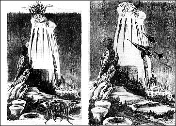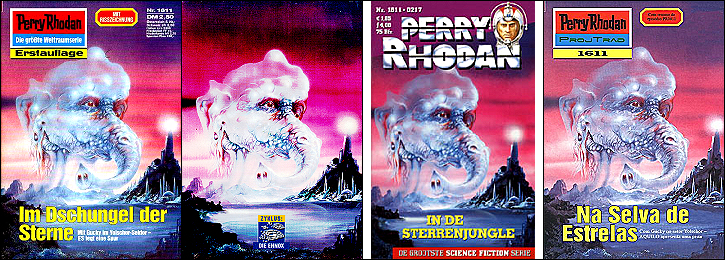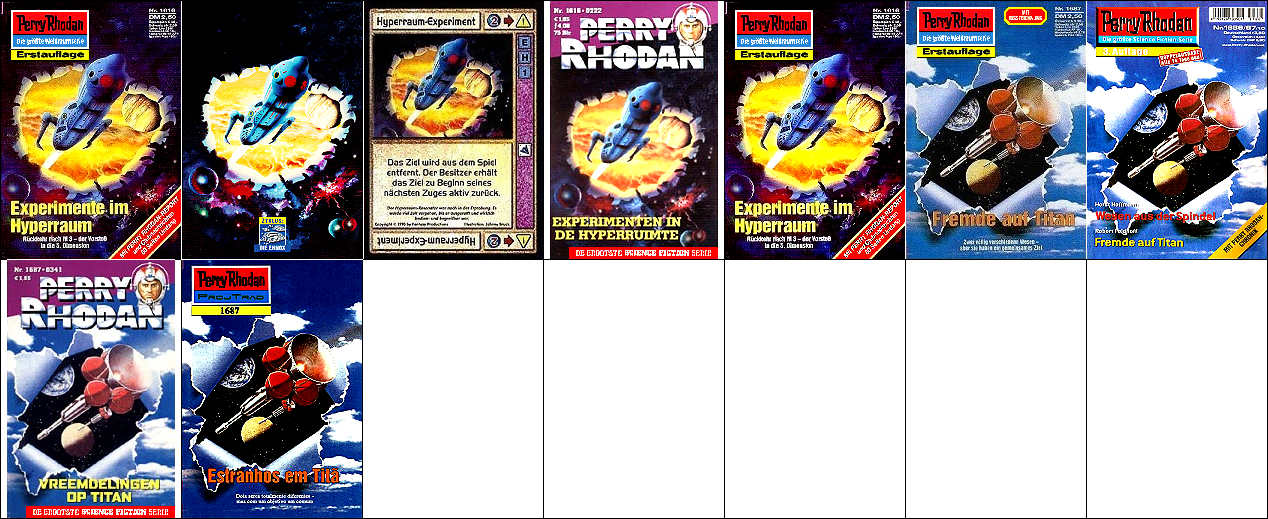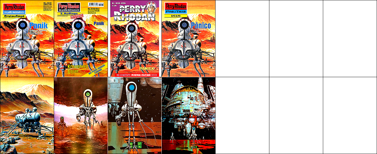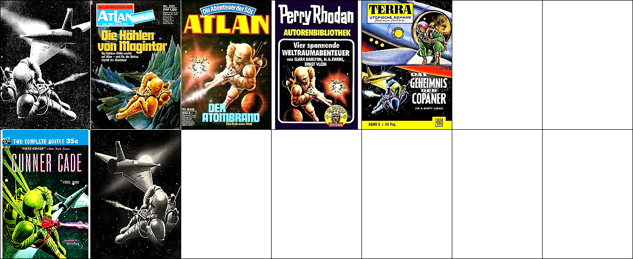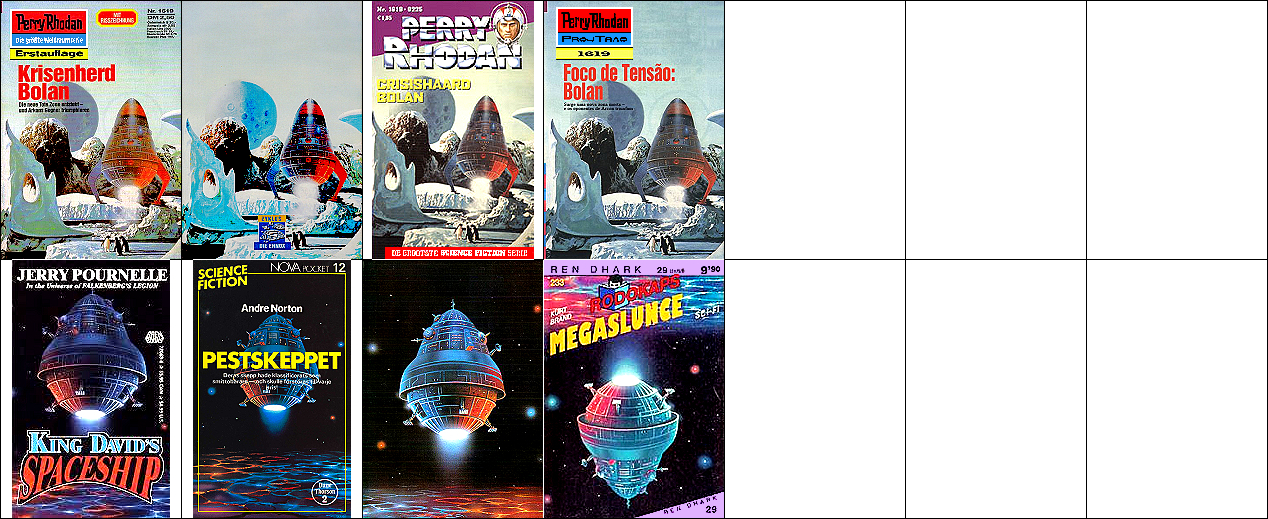 1 - 4, 8 - 11 gleiches Bild, 11 umgedreht, das Raumschiff in 8 diente als Vorbild für das in 1, man beachte den unteren Teil |