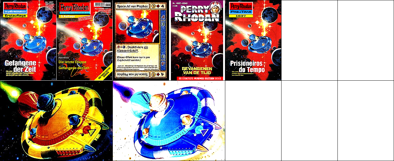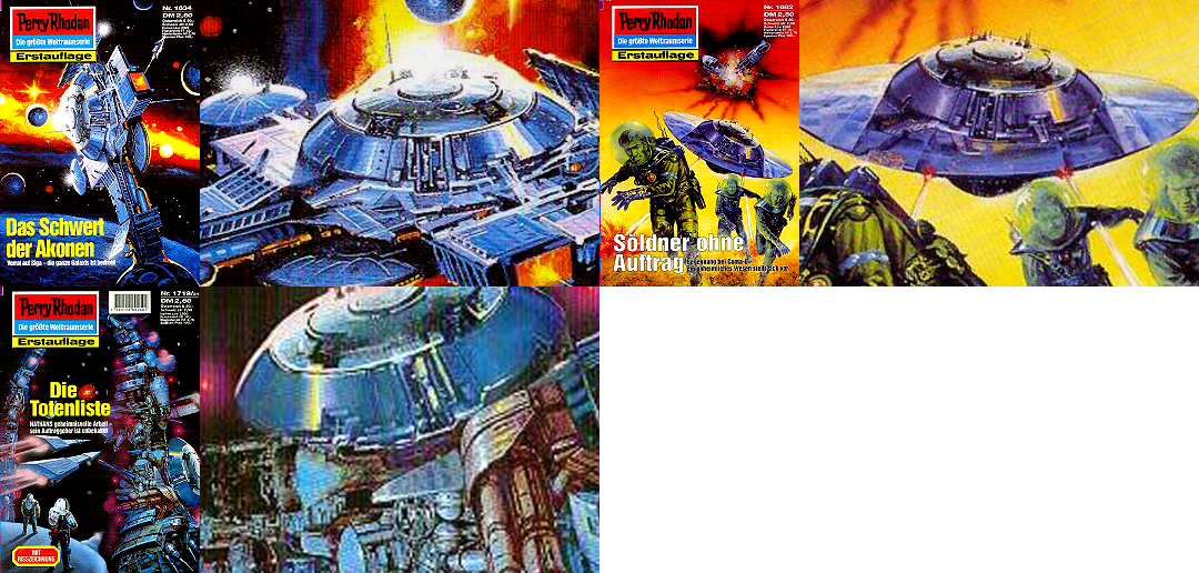 1 - 6 gleiches Bild, 5 - 6 Ausschnitte, die Raumstation ist wahrscheinlich von 8 oder 9 nachgezeichnet |