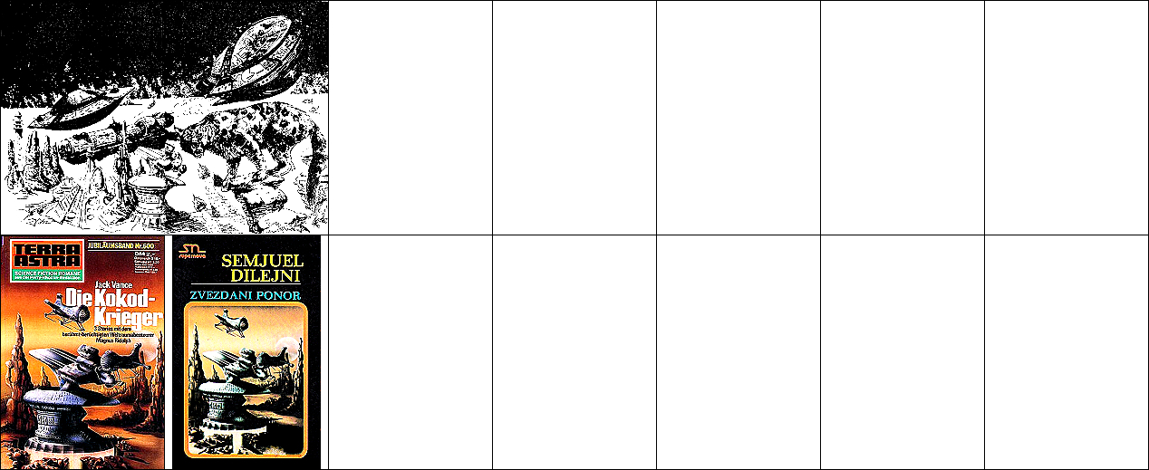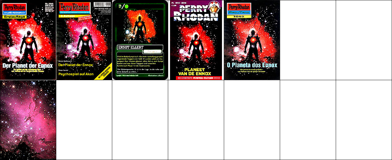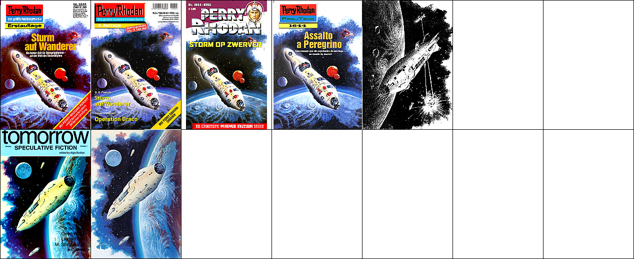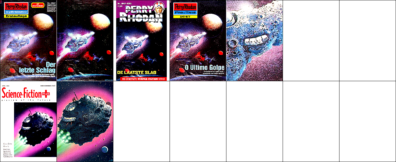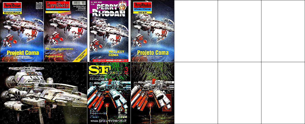 1 - 4 gleiches Bild, das Raumschiff ist von 8 nachgezeichnet, die unteren Raumboote haben ihr Vorbild in 9 bzw. 10 |