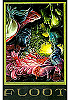 Schlangenwesen in fremdartiger Umgebung mit roten blubbernden Blasen |