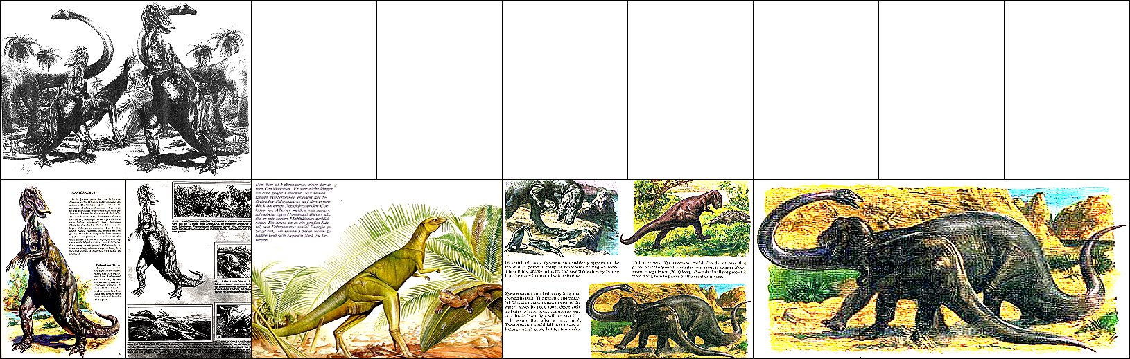 der vordere Anatosaurus ist von 8 bzw. 9 nachgezeichnet, der kleine Fabrosaurusr in der Mitte von 10 und die riesigen Diplodoci im Hintergrund von 11 |