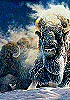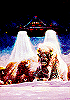 Bisonherde wird von den Scheinwerfern eines Raumbootes angeleuchtet |