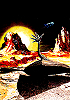 1 - 4 gleiches Bild, der Felsen samt dem zylinderförmigen Gerät ist komplett von 8 übernommen, der Raumfahrer aber verändert |
