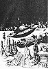 1 - 5 gleiches Bild, 5 vergrößerter Ausschnitt, als Vorbild diente seitenverkehrt die Raumstation in 8 (man beachte die rote Färbung am hinteren Ende des Zylinders), die Mondoberfläche mit den Kuppeln stammt von 9 |