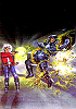 1 - 4 gleiches Bild, 6 ähnliches Motiv, 8 - 10 gleiches Bild, Vorlage für Nachzeichnungen bzw. die Figur ist in 1 als Collage eingebaut und leicht übermalt, davon einmal gespiegelt, das Gerät in der unteren Hälfte von 1 ist vom Waffenarm des Roboters in 11 übernommen |