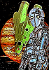 Roboter und Außerirdischer mit fledermausartigem Kopf, siehe auch