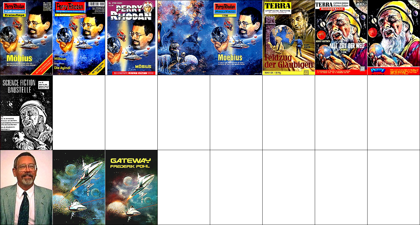ähnliche Motive, 1 - 4, 6 - 7 gleiches Bild, 8 von 6 nachgezeichent, Vorbild für den Mann in 1 ist Kurt Mahr, 16 bzw. 17 ist Vorbild für das Raumboot in 1 |